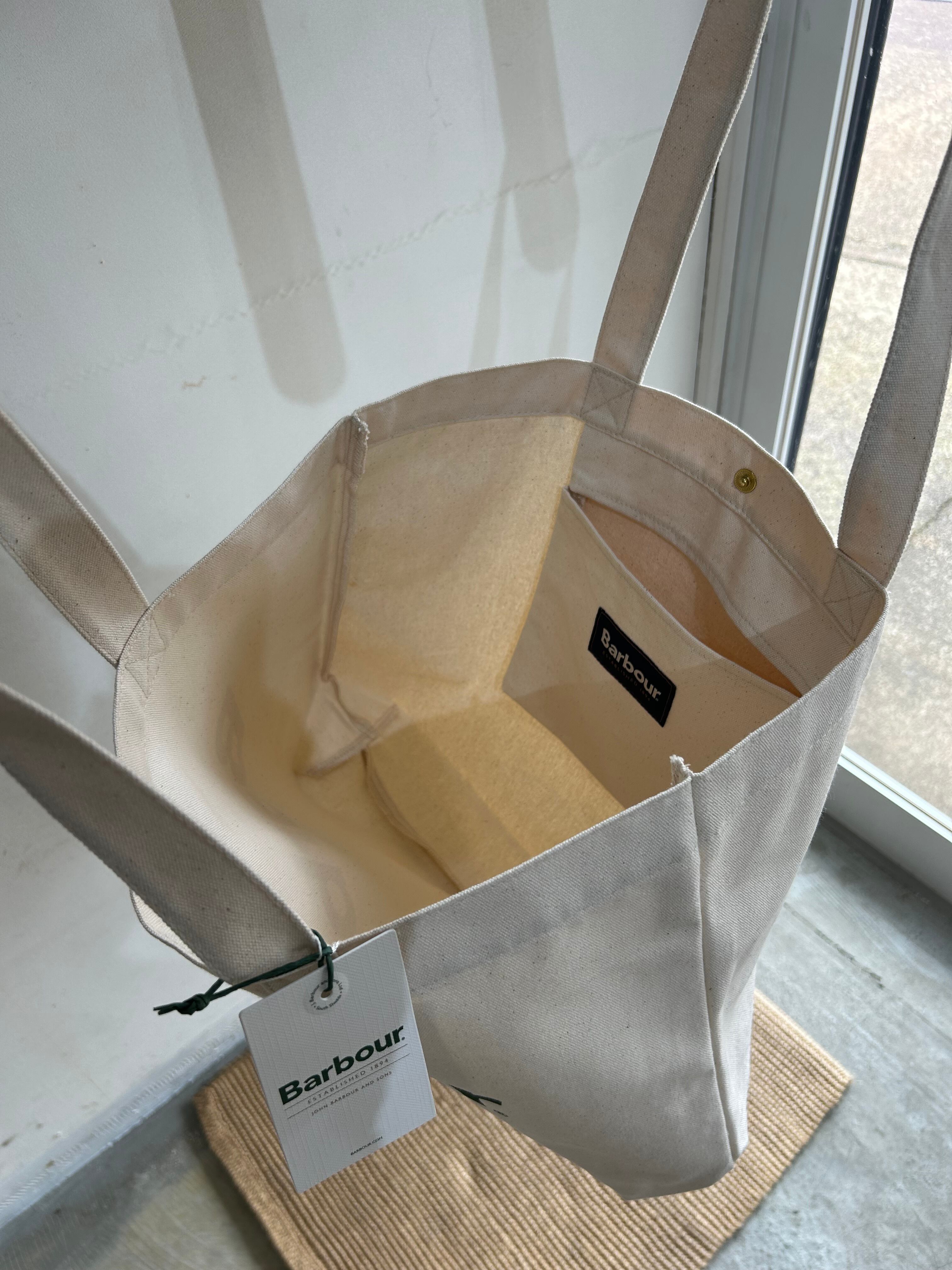軽くしなやかなコットンキャンバス素材にブリティッシュグリーンのロゴが片面のみプリントされています