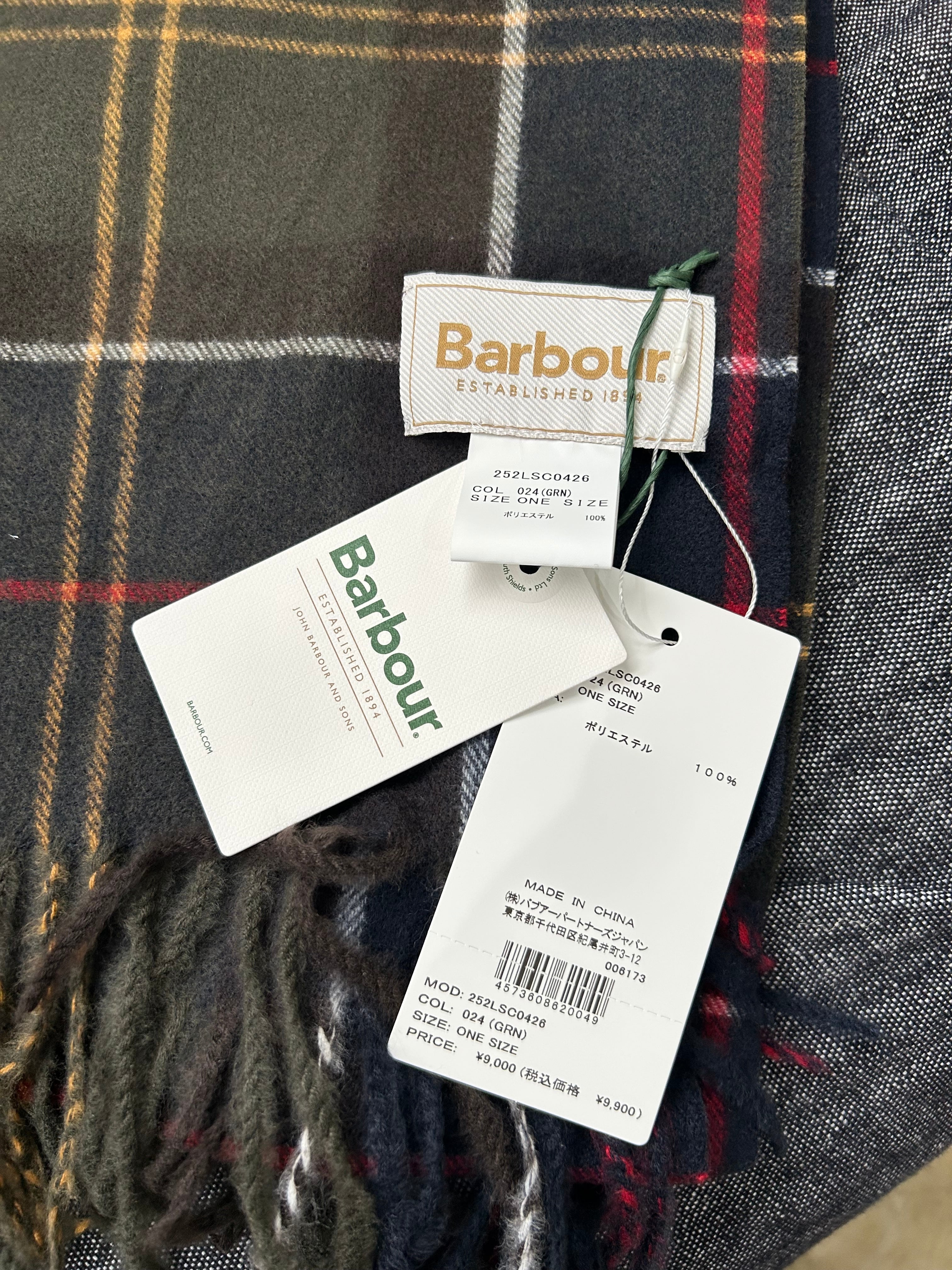 バブアーブランドのクラシックタータンが採用されたラベル付きの大判スカーフ・マフラーです