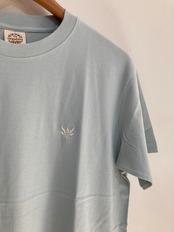 オフ・ホワイトカラーで刺繍された小さなブランドアイコンが左胸に裾にはピスネームが控えめに配置されています
